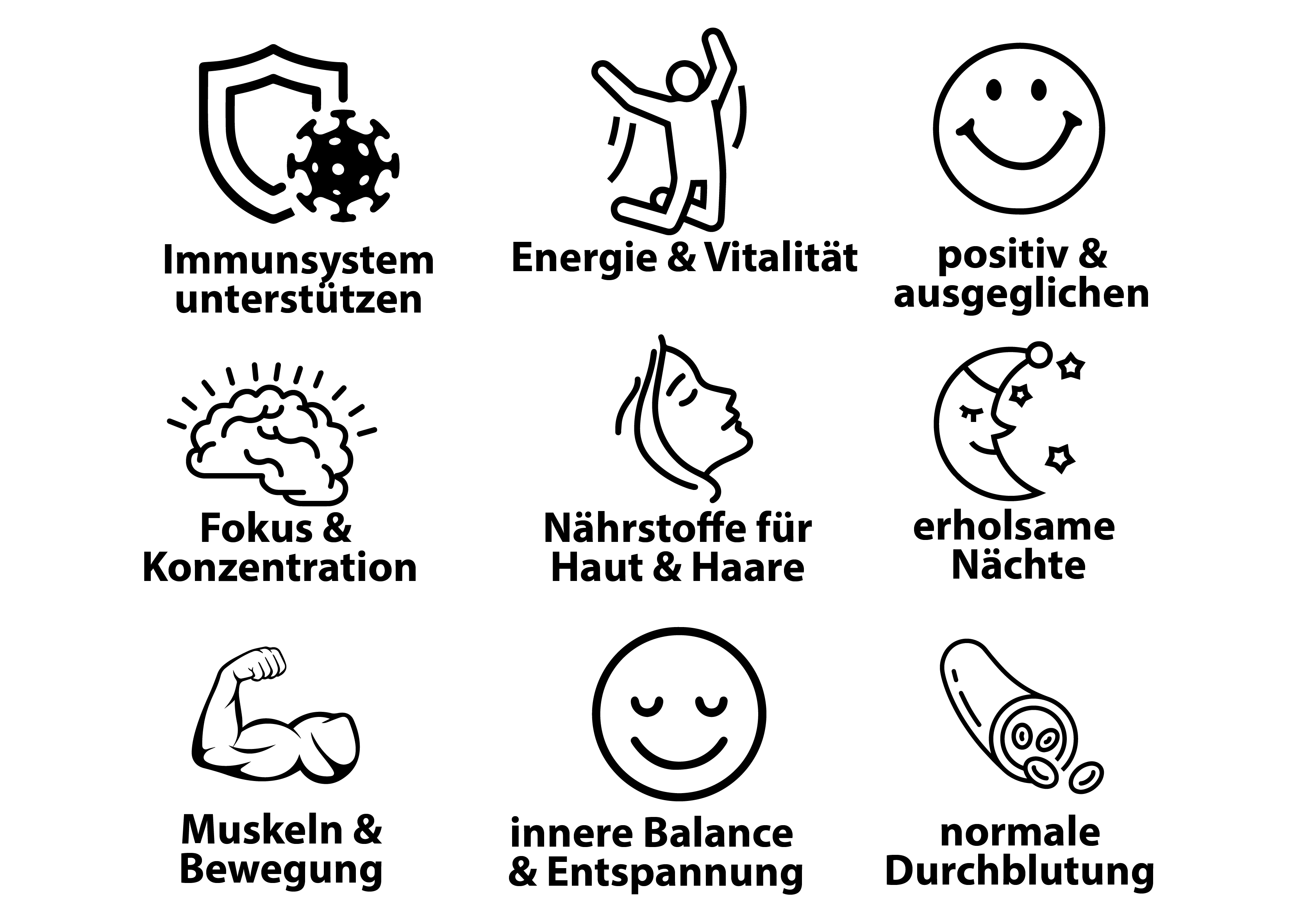 Fühle mich viel Vitaler, habe Energie, bin wach und konzentriert. Funktionieret super, aber ohne diese nervige Nervosität wie bei Kaffee oder Cola oder so. Hält was es verspricht. Ich finde Euren Gedanken toll, dass Ihr ein Produkt gemacht habt, dass viele Wirkungen in 1 Produkt vereint. (Habe meine ganzen Anderen Produkte nicht mehr in Gebrauch und nimm nur noch euers). Echt eine gelungene Sache, vielen Dank!